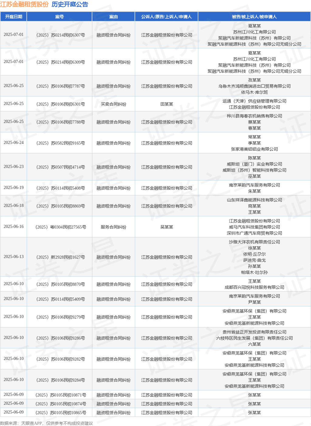 本站消息财富策略财富策略,根据天眼查APP显示,近日公布了一则江苏金融租赁股份有限公司作为原告/上诉人的开庭公告,详细内容如下: