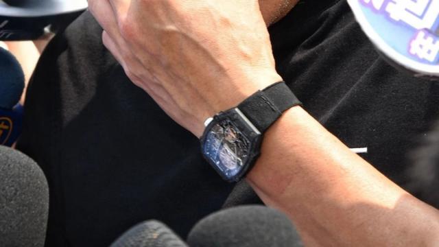 前阵子,身家 8521 亿的他现身时,不仅脱掉标志性的皮衣,身穿 Burberry T 恤,罕见上手理查米尔 RM27-05 腕表,价值逼近千万级。