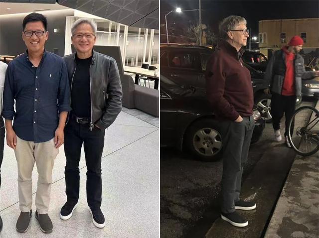 这种黑色 + 白边的休闲鞋,如今是大佬圈选鞋的最大公约数。黄仁勋还曾用皮衣配菲拉格慕休闲鞋,比尔盖茨隔天也"悄悄效仿" ~
