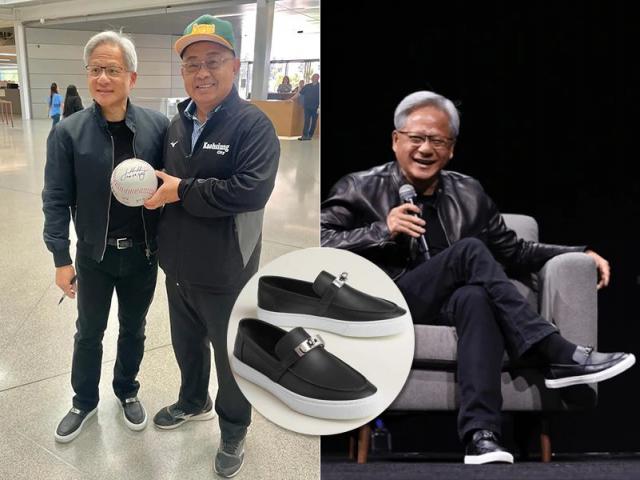 话说黄仁勋这回穿的,还是新解锁的杜嘉班纳机车皮衣,款式偏运动,价格 5.25 万元。脚下仍是那双爱马仕 Game Slip On,Kelly 银扣抢镜。