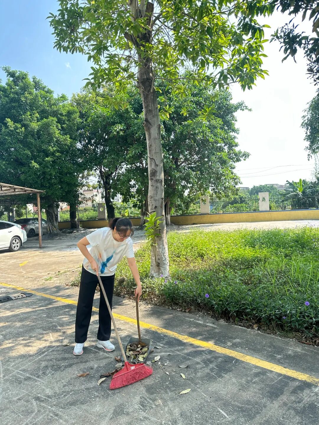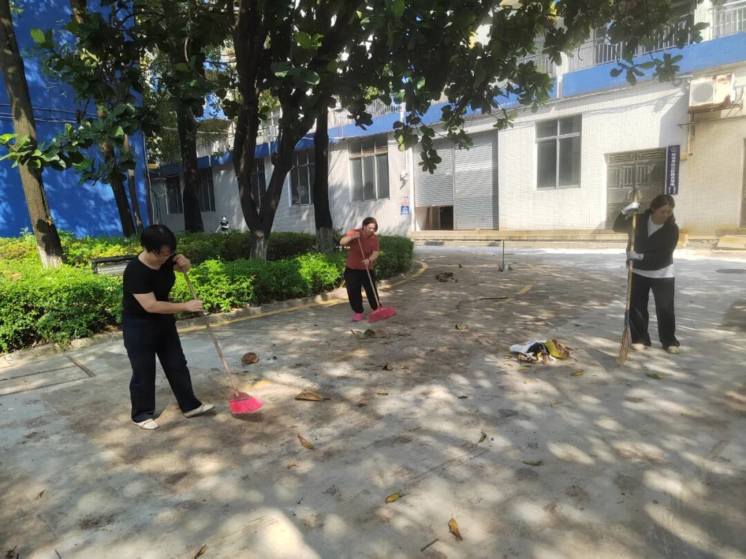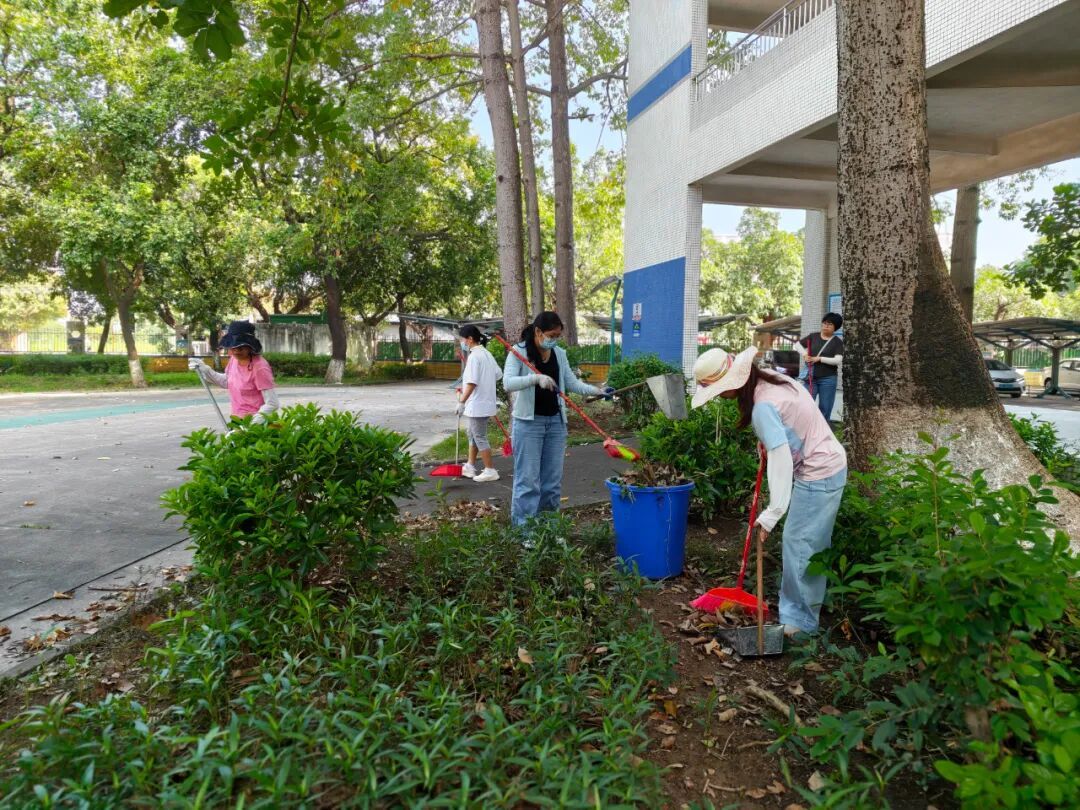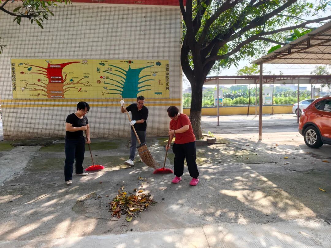 活动过程中,各科组教师在学校的细致安排下,分工明确,积极投入。大家拿起扫帚、铁锹、垃圾袋等工具,对教学楼、办公区、操场及绿化带进行了全方位、无死角地清理。重点对灌木丛中长期积累的落叶、杂草以及隐匿的人为垃圾进行了彻底清掏。尽管天气炎热,但老师们干劲十足,或弯腰俯身,或协力搬运,汗水浸透了衣衫,却无人叫苦叫累,现场一派繁忙而有序的景象,充分展现了我校教师团结协作、乐于奉献的良好精神风貌。