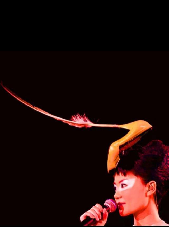 上面这个把高跟鞋当帽子的创意,后来王菲在演唱会上也有用到▼