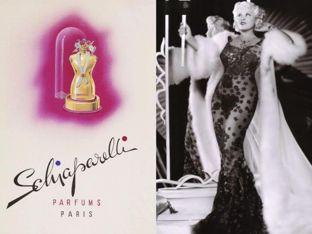 1937年她推出了"Shocking"香水(左),瓶身直接按Mae West(右)身材定制,金色裸女造型比高缇耶早了56年。▼