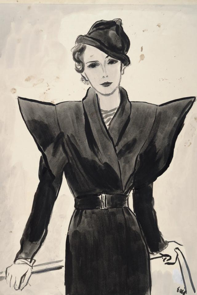 1933年的她更是放大了肩线,做出一件超宽肩裹身外套,让当时的贵妇名媛们觉得好新鲜。▼