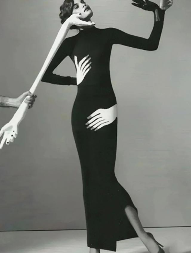 还有这条裙子,表面绣了一对女性的手,轻抚着穿着者的腰和臀,一点不露但非常性感大胆。▼