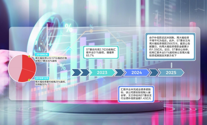 而作为ST景谷控股股东的周大福投资已深陷泥潭,接掌ST景谷7年来先后砸下23.25亿元收购款、上亿元借款,并吞下1.42亿元债权,如今再被迫接盘不良资产汇银木业。截至2025年8月25日收盘,ST景谷市值仅29.87亿元,周大福投资已深陷巨亏,昔日资本布局代价高昂。